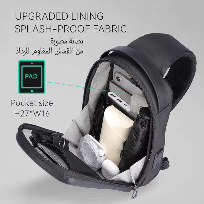 حقيبة صدر بكتف واحد بتصميم عصري لون أسود - JMCB1