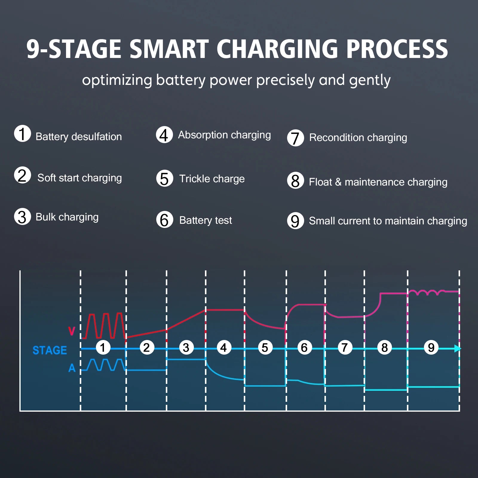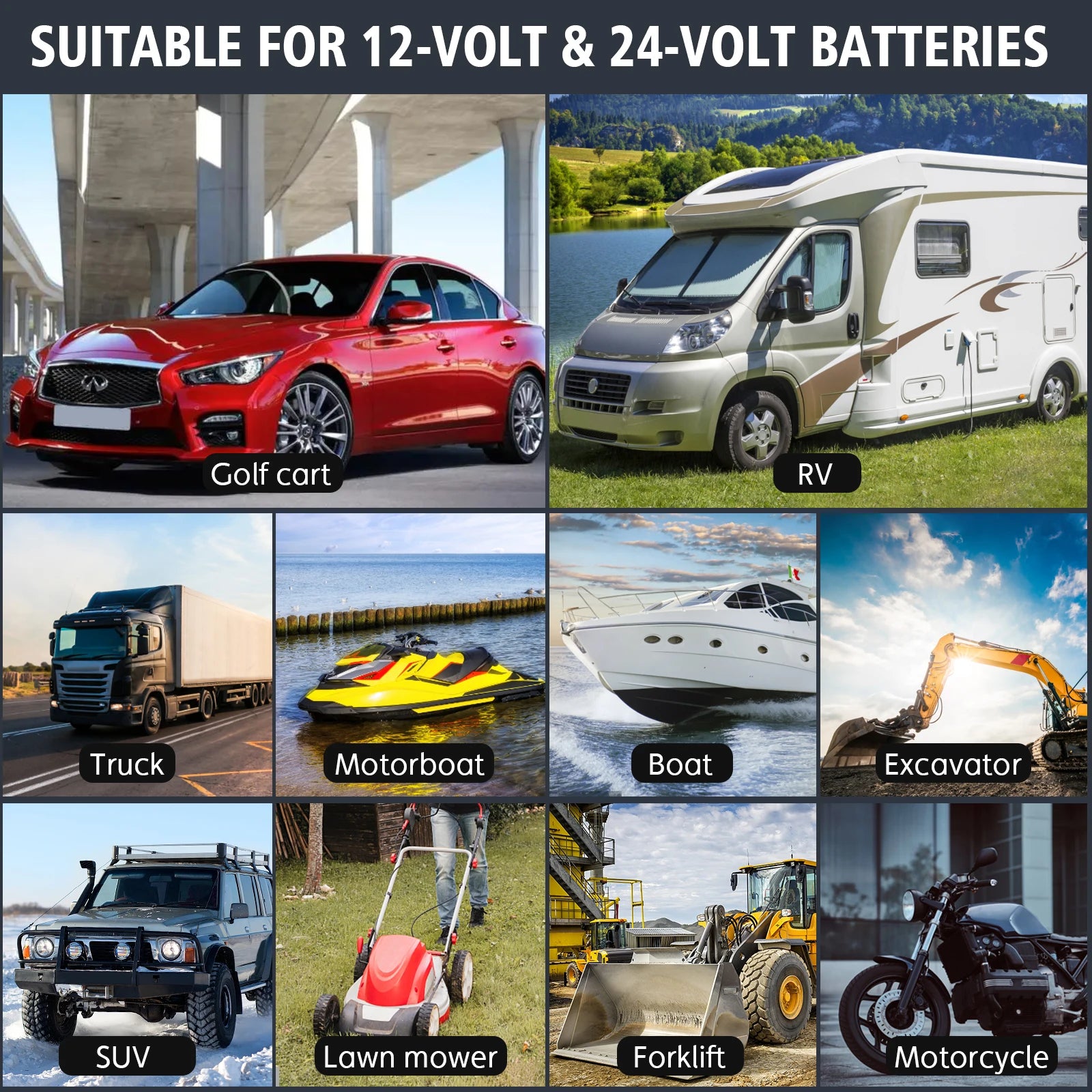 بما في ذلك بطاريات AGM، وGEL، وSLA، وWET، وDEEP CYCLE، وEFB، وCalcium، وغيرها.